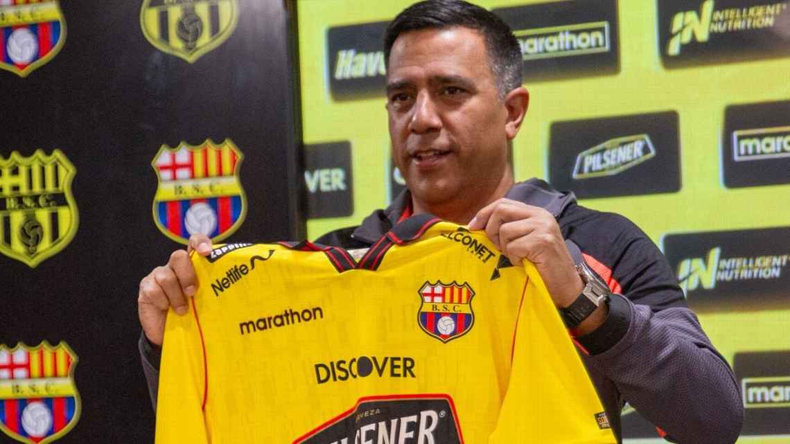 César Farías fue presentado oficialmente en rueda de prensa, como entrenador de Barcelona Sporting Club, junto al Presidente Antonio Álvarez y dirigentes del club amarillo.
